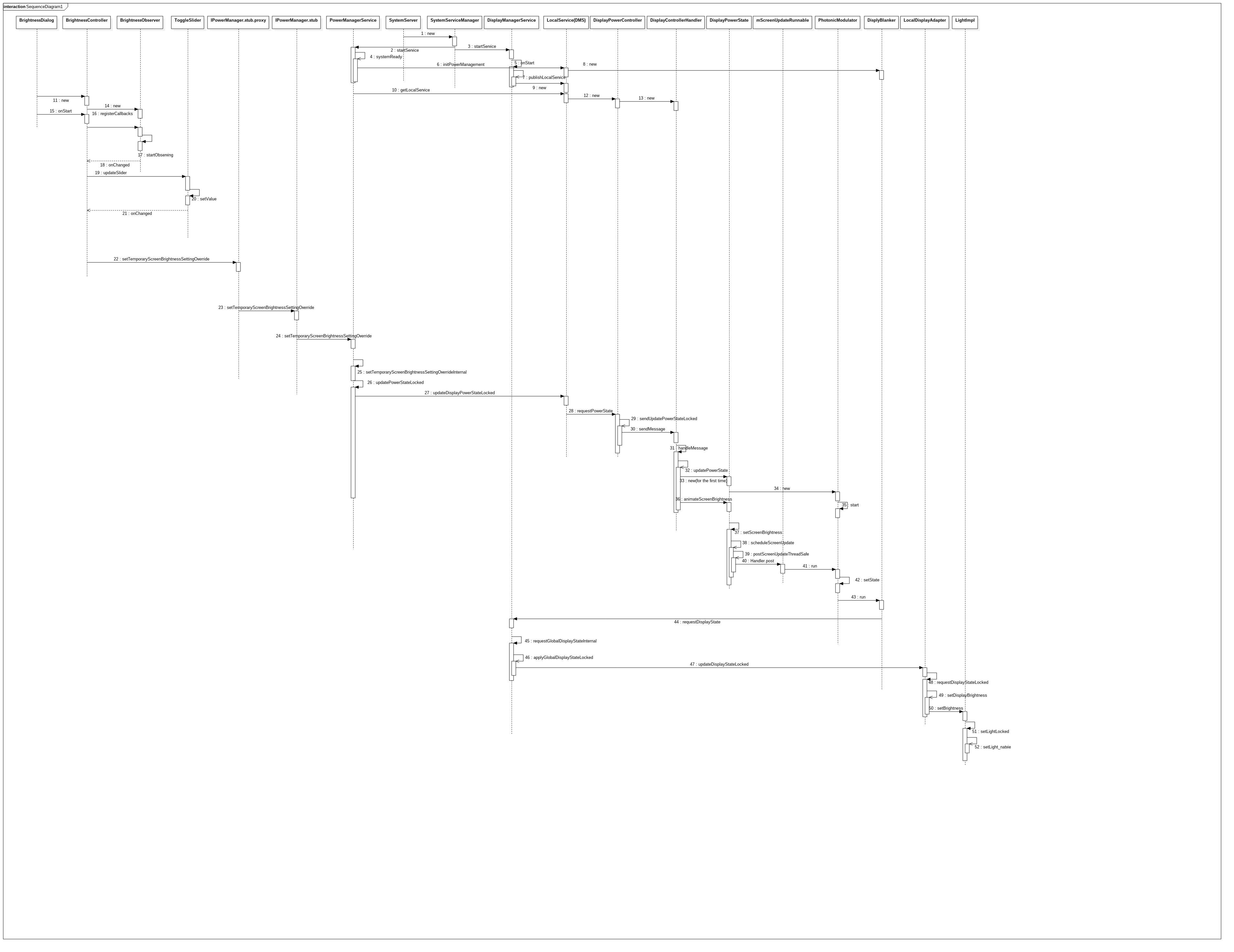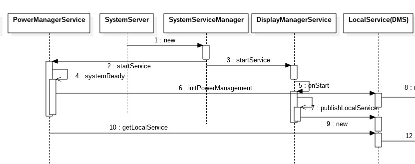 为了要支持亮度调节,需要Android系统的两大服务PMS(PowerManagerService)以及DMS(DisplayManagerService)的支持,它们的启动均在SystemServer启动的流程时开始。而SystemServer为了能够开启这两大服务,需要借助SystemServiceManager的协助。可以看到SystemServer在开启服务的时候都用了类似如下语句: