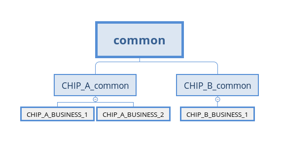 上述展示了CHIP_A平台中,根据业务分成了CHIP_A_BUSINESS_1,CHIP_A_BUISNESS_2两类选择,此时的方案结构设计应当如下所示: