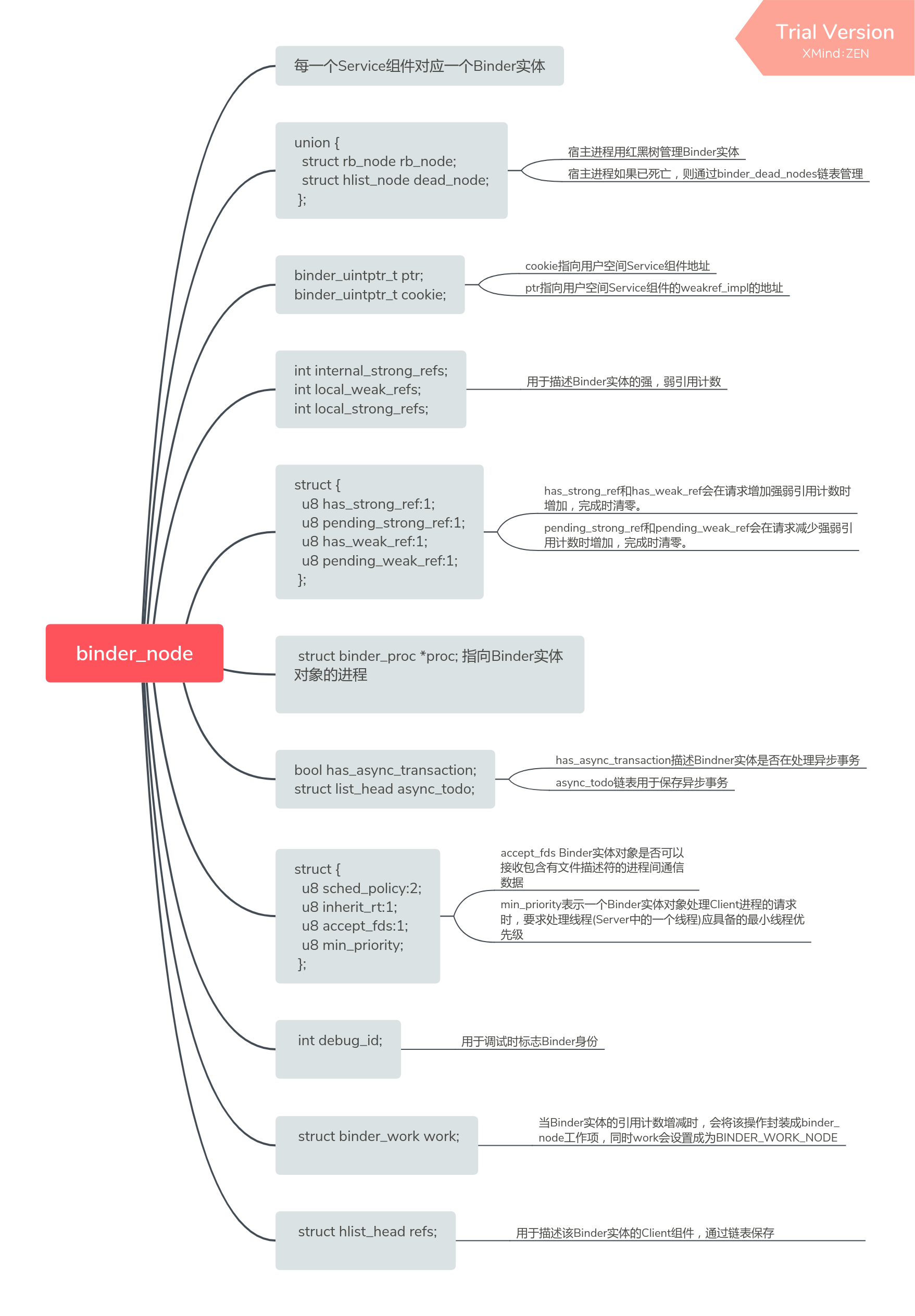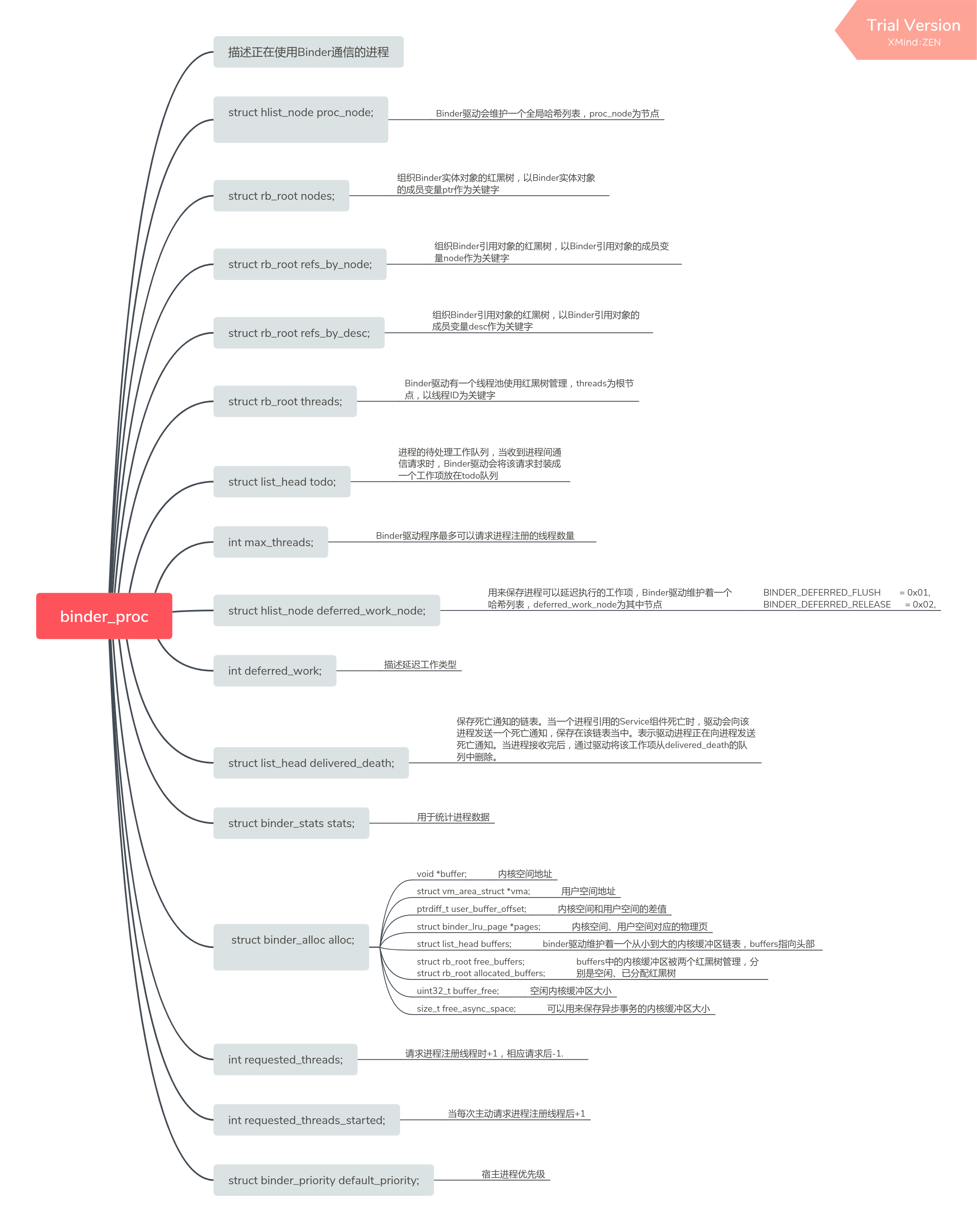 本文主要希望通过图解的方式梳理清楚Binder驱动的数据结构和基本操作流程,帮助理解Binder通信的本质。首先展示一张 Binder数据结构的合集图: