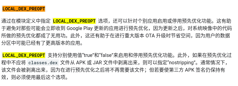 查阅资料可得,是由于App经过了某些优化或者改动导致破坏了签名,才导致问题的出现.于是着重尝试了LOCAL_DEX_PREOPT的设置.但是无论怎么改动,发现生成的Apk的md5值都是不变的(编译eng固件).